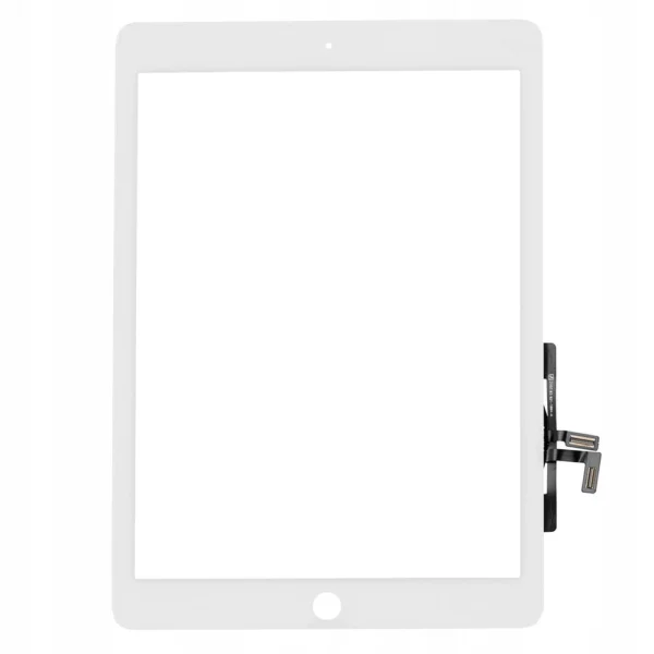 Kompletny panel dotykowy (digitizer) do Apple iPad 5 Biały (White), zawierający fabrycznie zainstalowane: ramkę aparatu przedniego, taśmy do podpięcia do urządzenia oraz folie ochronne z przodu i tyłu.